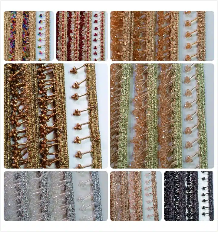 Our Nalki Cristal Phol lace is available through reliable Lace Centers that supply high-quality decorative trims for designers, boutiques, and fashion businesses. Whether you are creating luxury bridal outfits or stylish evening wear, this lace adds elegance and sparkle to every design.